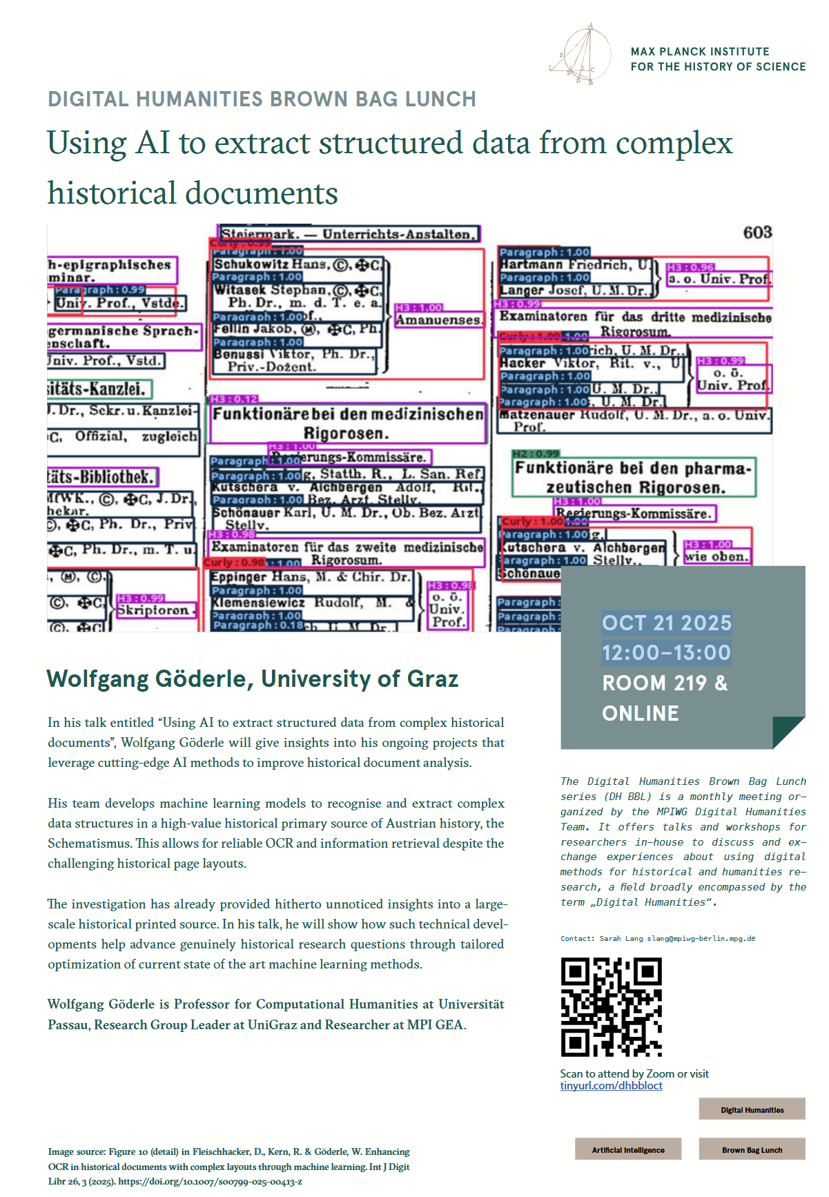 scale historical printed source. In his talk, he will show how such technical developments help advance genuinely historical research questions through tailored optimization of current state of the art machine learning methods.